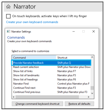 And choose a shortcut key for the ‘Provide Narrator feedback’ setting.
