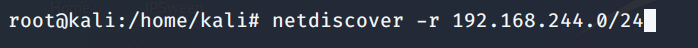 So we have both of our VM running i.e. the Mr. Robot Target VM and our Kali Linux box for interacting with it. Lets us first discover the IP address of the target machine. I would be using the Netdiscover tool already prebuilt in Kali Box, after confirming my host IP address lets begin with the discovery as shown. The -r switch is for specifying the range of the subnet we want a scan for discovery.